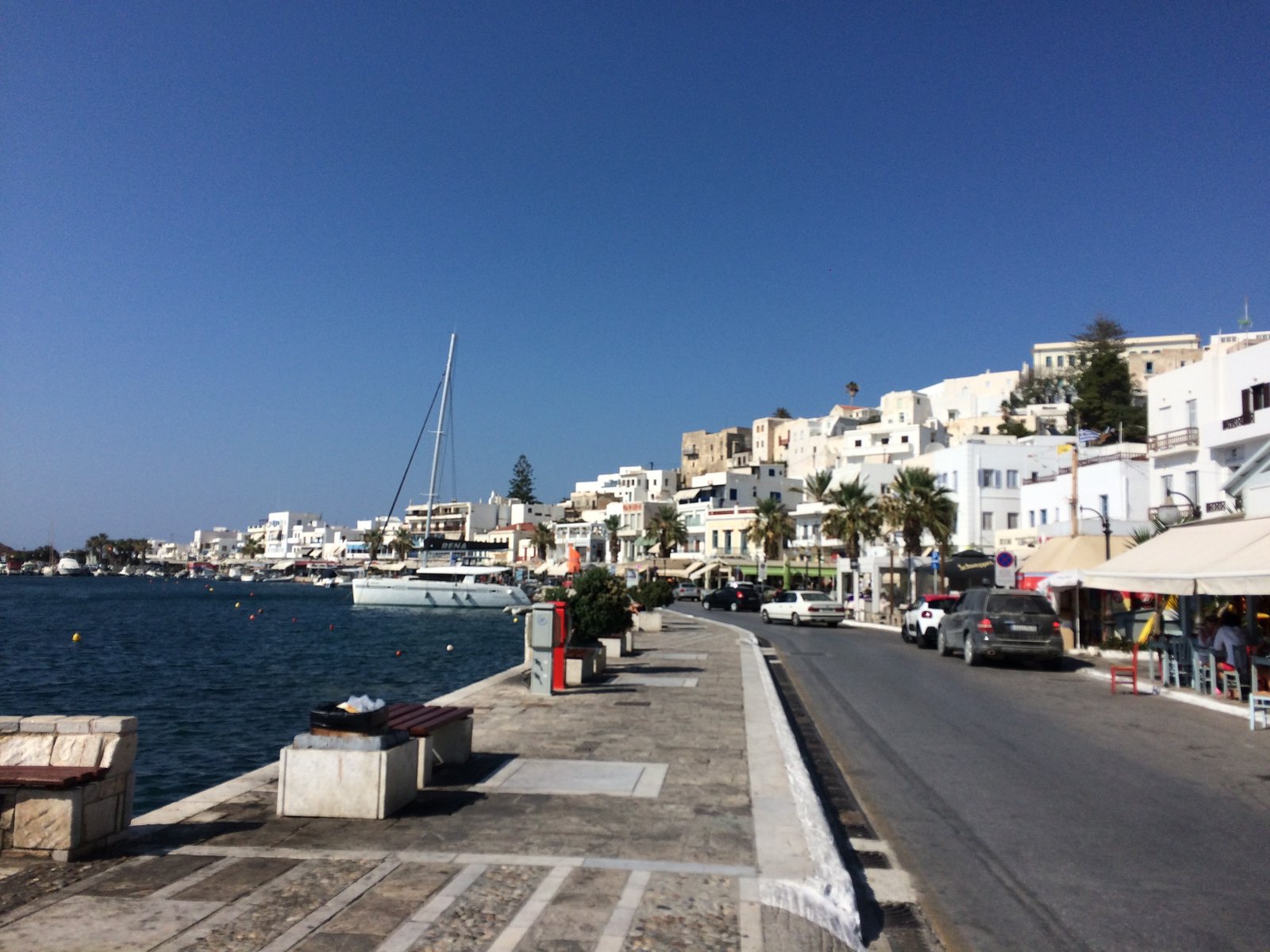 This is one of the most popular and beautiful places I have been. Golden sandy beach and turquoise blue water make every picture you take look like a postcard or an advertisement. There are plenty of seafood tavernas, cafes, bars, pizza, and fast-food restaurants. Plus, a couple of nightclubs on the beach where people staying in the area can have their share of nightlife without going to Naxos town.